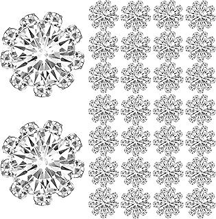30Pcs Rhinestone Embellishments Flatback Buttons 12mm Sew on Rhinestones Gems Button Crystal Flower Flatback Silver Rhinestone Glass Buttons for DIY Jewelry Bridal Bouquets Clothing Shoes