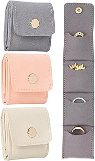 3PCS Mini Travel Jewelry Bag, Portable Genuine Leather Mini Travel Jewelry Organizer,Foldable Travel Jewelry Pouch Necklace Travel Case No Tangle for Women for Earring/Ring/Necklace/Bracelet