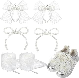 6PCS Sneaker Charms Pearl Lace Shoe Laces Bow Shoe Jewelry for Sneakers Women Girls Shoes Clothes Junk Socks Decoration Accessories