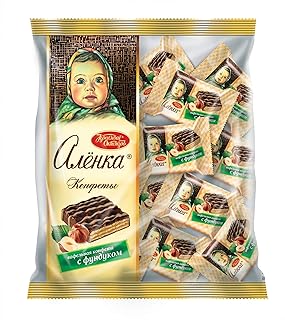 Alionka Alenka Olenka Nutty Wafer Cookies with Milk Chocolate Glaze and Hazelnuts in Individual Wraps 8.8oz/250g Gourmet Imported Russian Candy Sweets Bars UNICONF Krasnyi Oktyabr