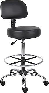 Boss Office Products Be Well Medical Spa Drafting Stool with Back, Black