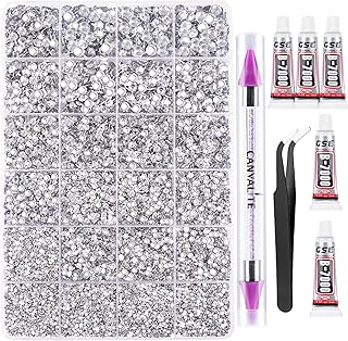 Canvalite 25000Pcs Resin Jelly Rhinestones for Crafting, Clear Flatback Gems, Bedazzling Crystal with 5Pcs 2.5g B7000 Jewelry Glues and Tweezers and Dotting Pen for DIY Crafts Clothing Shoes Nail Art