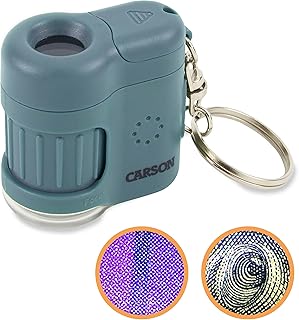 Carson MicroMini 20x Pocket Microscope for Adults, UV and LED Flashlight, Blue (MM-280B)