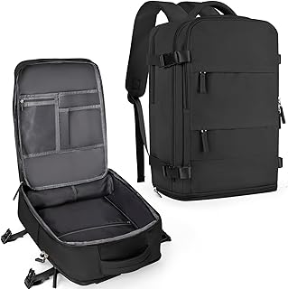 coowoz Large Travel Backpack For Women Men,Carry On Backpack Flight Approved,Hiking Backpack Waterproof Outdoor Sports Rucksack Casual Daypack Fit 15.6 Inch Laptop Shoes Compartment (Black)