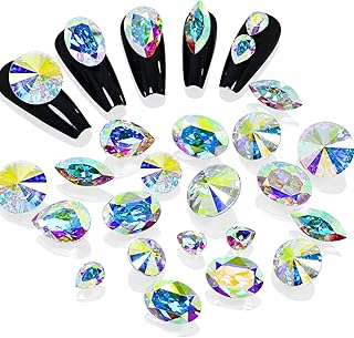 Dongzhou K9 Glass Crystal AB Nail Rhinestones Pointed Back Crystals Mix Sizes Gems Stones Decorations Set for Nail Art Clothing Jewelry Shoes Bags, Especially for Nails Design