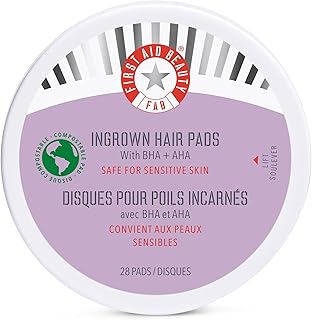 First Aid Beauty – Ingrown Hair Pads with BHA + AHA – Aftershave Treatment Pads to Help Prevent Razor Bumps for Men & Women – Exfoliate Underarms & Bikini Area – Compostable for Daily Use – 28 Pads