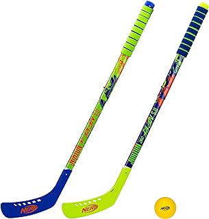 Franklin Sports NERF Proshot Kids Hockey Sticks+Ball Set-2 Player Youth Indoor+Outdoor NERF Hockey Set-2 in 1 Knee+Floor Hockey Sticks-(2)NERF Proshot Youth Hockey Sticks+(1)Foam Hockey Ball Included