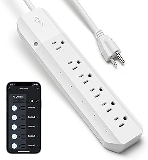 Geeni Smart Surge Protector 6-Outlet Power Strip – Wi-Fi Enabled with Voice Control (Alexa, Google Assistant), Surge Protection, 3ft Extension Cord, Remote Access