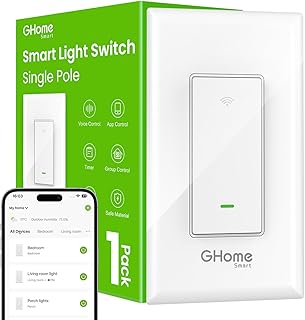 GHome Smart Switches for Lights, WiFi Smart Light Switch Works with Alexa and Google Home, Single-Pole, Neutral Wire Required, 2.4Ghz WiFi Light Switch with APP Control, No Hub Required, UL FCC Listed