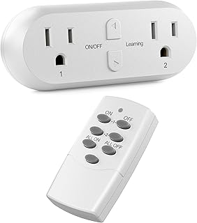 HBN Wireless Remote Control Outlet with 2 Individual Switch Control, Compact Design Sockets Plug Up to 100ft Remote Range, Battery Included, 15A/1875W, ETL Certified