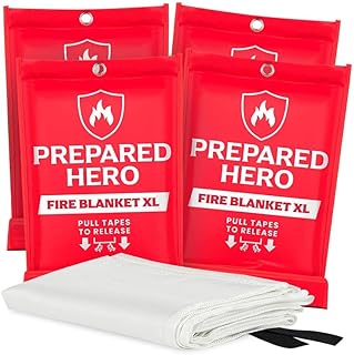 Hero Extra Large Emergency Fire Suppression Blanket – 4 Pack – XL Fiberglass Fire Blanket for Kitchen & Home, 47′ x 71′