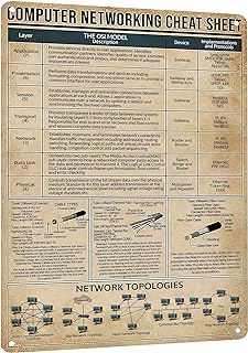 HYBLOM Retro Computer Networking Cheat Sheet Tin Sign – Programmer Gift, Vintage Classroom and Office Wall Art Decor Metal Poster 12×16 Inches