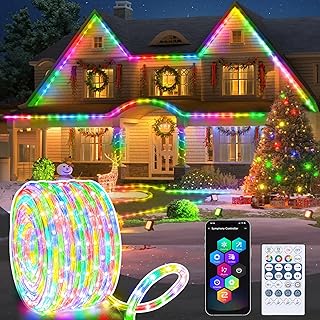 Jnaurb RGB Color Changing Rope Lights Outdoor, 66ft 200LED Smart String Lights with Remote & APP Control, Waterproof Music Sync Rope Lighting – DIY Flexible Tube LED Lights for Bedroom Garden Wedding