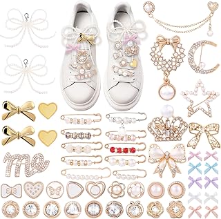 JOICEE 54 Pcs Shoe Charms Kit for Sneakers, Gold Brooches Pins Pearl Bow Lace Shoes Charms Jewelry Accessories Bulk for Sneakers Socks Clothes Hats Bags Decor