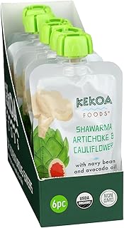 Kekoa Foods Shawarma, Artichoke & Cauliflower Baby Food Purée | 100% USDA Certified-Organic Vegetarian Squeeze Pouch | Organic, Non-GMO, Gluten-Free, Vegan | Nutritious First Food for Babies | 3.5 oz