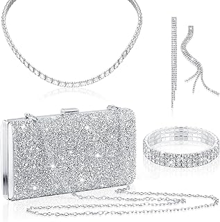 Kigeli 4 Pieces Women Rhinestone Evening Clutch Bag Bling Earring Necklace Bracelet for Wedding Formal
