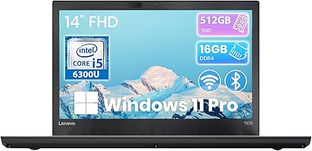 Lenovo ThinkPad T470 Business Laptop, 14-inch FHD(1920 x 1080) Ultrabook, Intel Core i5-6300U, 16 GB RAM, 512 GB SSD, HDMI, Wi-Fi, Windows 11 Pro (Renewed)