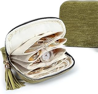 LOTOFUN Jewelry Organizer Case for Travel: 5-Layer Velvet Zipper Pouch Bag for Bangles Link Bracelets Storage Protect from Tangle Scratch (Avocado Green)