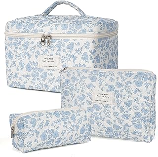 Makeup Bag,Quilted Cosmetic Bag,Large Floral Make Up Bag for Women,Cotton Makeup Bag Set,Flower Travel Toiletry Bag