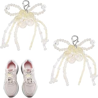 MECCANIXITY Pearl Bow Shoe Charm for Sneakers Bowknot Shoes Decoration Buckle Pearl Beaded Chain for DIY Dress Shoelace