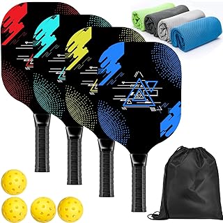 Pickleball Set with 4 Premium Wood Paddles, Cushion Comfort Grip, 4 Cooling Towels, 4 Pickleball Balls & Carry Bag, Pickle Ball Paddle for Men Women