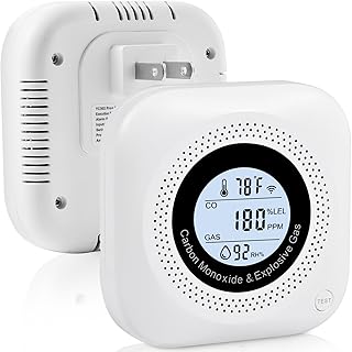 Plug-in Carbon Monoxide & Natural Gas Leak Detector, 4-in-1 CO, Methane, Propane Alarm with Temperature & Humidity Monitor for Home, Kitchen, RV, Hotel, Travel – White
