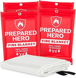 Prepared Hero Emergency Fire Blanket – 4 Pack – Fire Suppression for Kitchen, 40” x 40” Fiberglass Fire Blanket for Home