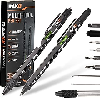 RAK Multitool Pen Gifts for Men, 2-Pack 11 in 1 Multitool Pen Set, Tech Cool Gadgets Stocking Stuffer Holiday Christmas Gifts for Dad, Husband, Grandpa, Him, EDC Tactical Pen Tool, Gift-Ready Box