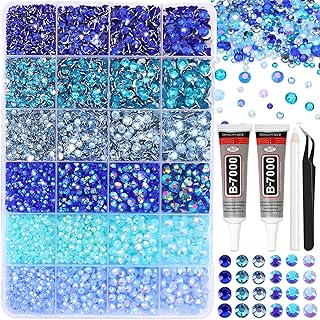 RODAKY Blue Rhinestone Flatback Gems for Bedazzling 3/4/5/6mm Crystal Rhinestones 2PCS 10ml B7000 Jewelry Glue Tweezers Pen Making Kit for DIY Craft Clothing Shoes