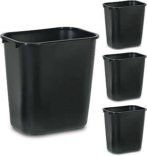 Rubbermaid Commercial Products Wastebasket/Trash Can, 7-Gallon/28-Quart, Black, Plastic, for Bedroom/Bathroom/Office, Fits Under Desk/Sink/Cabinet, Pack of 4