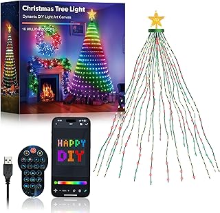 Smart Christmas Tree Lights 6FT 400LED, DIY Color Changing Waterfall Xmas Tree Lights with Ring & Top-Star, Remote & APP Control, RGB-IC Dynamic String Light, Music Sync for Indoor Decor