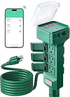 SURAIELEC Outdoor Smart Plug, WiFi Power Stake Light Timer with 6 Outlet, 6FT Extension Cord, Electrical Weatherproof for Patio Lights, Christmas Decorations, Compatible with Alexa/Google Assistant