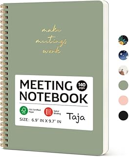 Taja Meeting Notebook for Work Organization – Work notebook with action items, Meeting Minutes Planner Notebook, Perfect Office Supplies for Men & Women – Green