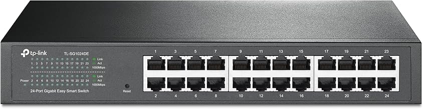 TP-Link 24 Port Gigabit Switch Easy Smart Managed Plug & Play Desktop/Rackmount Sturdy Metal w/ Shielded Ports Support QoS, Vlan, IGMP & LAG (TL-SG1024DE),Black