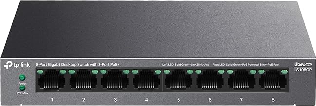 TP-Link LS108GP | 8 Port PoE Gigabit Ethernet Switch | 8 PoE+ Port @ 62W | Plug & Play | Extend Mode | PoE Auto Recovery | Desktop/Wall Mount | Silent Operation