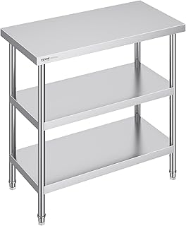 VEVOR Stainless Steel Food Prep Table, 18 x 36 x 34 Inch Commercial Kitchen Worktable, with 2 Adjustable Undershelf, Heavy Duty Prep Metal Work Table for BBQ, Kitchen, Home, and Garage