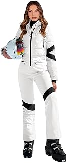 Yousify Womens Onesie Ski Suit Winter Outdoor Sports Warm Waterproof Snowsuit Color Block Jumpsuits Snow Jackets
